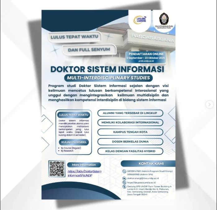 π Info selengkapnya: https://bit.ly/DoktorSistemInformasiSPs UNDIP