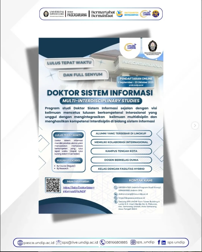 👉 Info selengkapnya: https://bit.ly/DoktorSistemInformasiSPs UNDIP